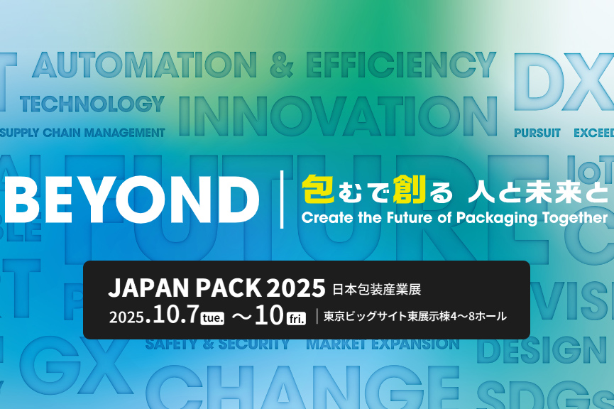 「JAPAN PACK 2025 日本包装産業展」では、『BEYOND|包むで創る 人と未来と』をメインテーマに掲げ、包装分野を軸に生産ラインの各種課題に対する今とその先のトレンドを一堂に展示公開するとともに、「包装×DX」「包装×GX」コーナー等の特別企画をはじめ、Startup & Academic area、包装ライフサイクルコーナー、CLOMAパビリオンといった様々なプログラムを多数実施し、ビジネス拡大の機会創出に寄与いたします。