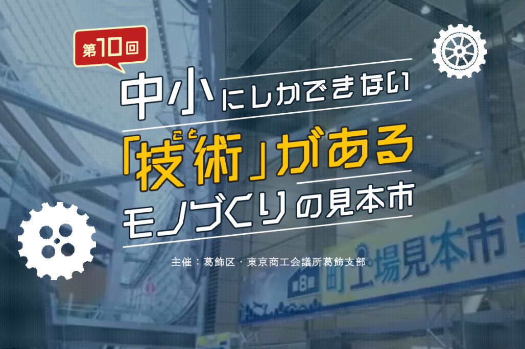 町工場見本市は葛飾区をはじめ、東京都城東エリアおよび近隣地域の中小製造業のための展示会です。 「機械・機器」、「金属加工」、「ゴム」、「プラスチック」、「ガラス」、「皮革」、「紙・印刷」、「繊維」、「めっき」等の製造業かつ中小企業が出展し、来場する企業・官公庁・事業開発、金融機関の方々との商談の場として活用されております。