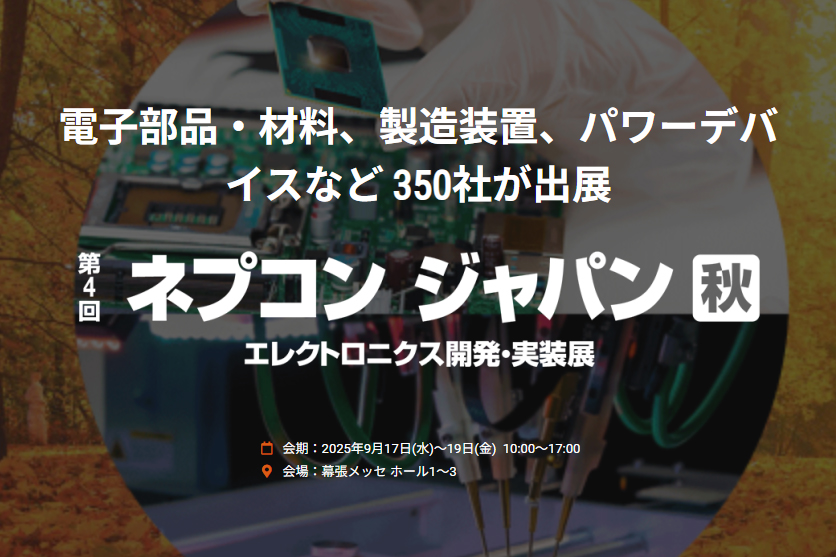 電子機器・半導体の部品・材料、製造装置などが出展!本展はエレクトロニクス機器の多機能化・高性能化を支える世界最先端の電子部品・材料や製造・実装・検査装置が出展する展示会です。国内外のエレクトロニクス、半導体・センサ、電子部品、自動車・電装品メーカーとの商談の場として定着しています。 同時開催展あり。来場登録はこちらVIP来場登録はこちら(課長職以上の方)