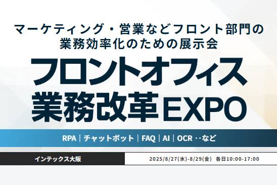 企業・店舗のフロントオフィス業務における課題を解決するRPA、チャットボット・FAQ、AI OCR、ビジネスチャット、ワークフロー、グループウェアなどの最新ソリューションが出展する展示会です。一度に複数の企業を比較検討できるため、新たなパートナー企業を発掘できる絶好の機会となります。ぜひ皆様のご来場をお待ちしております。 同時開催展あり。