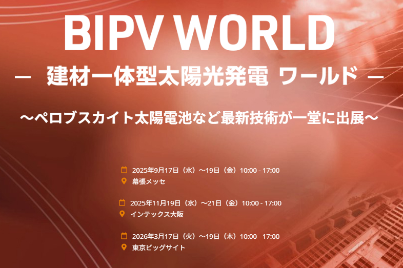 このたび、日本最大※の太陽光発電技術の展示会「PV EXPO【 国際】太陽光発電展」にてBIPV技術に特化した展示やカンファレンスを行う特別企画「BIPV WORLD ー 建材一体型太陽光発電 ワールド ー」を開催いたします。業界のキープレイヤーや最新情報、先端技術を一堂に集めることで、BIPV分野の発展と市場拡大に貢献してまいります。