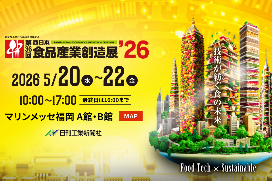 本展示会では、食品加工の高度化や自動化・省力化のための生産設備(デジタル化やロボットとの協働)など、課題解決につながる新製品・新技術・新サービスを一堂に集め、さまざまな食品製造の技術を紡ぎます。九州から全国へ、食品産業の未来を創造し、最新技術や新たな顧客との出会いの場を提供します。