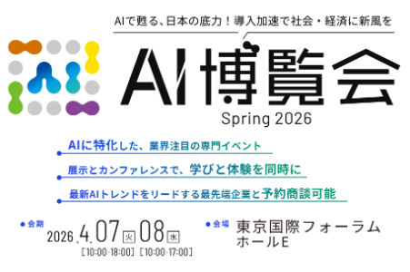 国内最大級のAIポータルメディア「AIsmiley」を運営する株式会社アイスマイリーは、2026年4月7日(火)・8日(水)の2日間、東京国際フォーラムにて「AI博覧会 Spring 2026」を開催します。