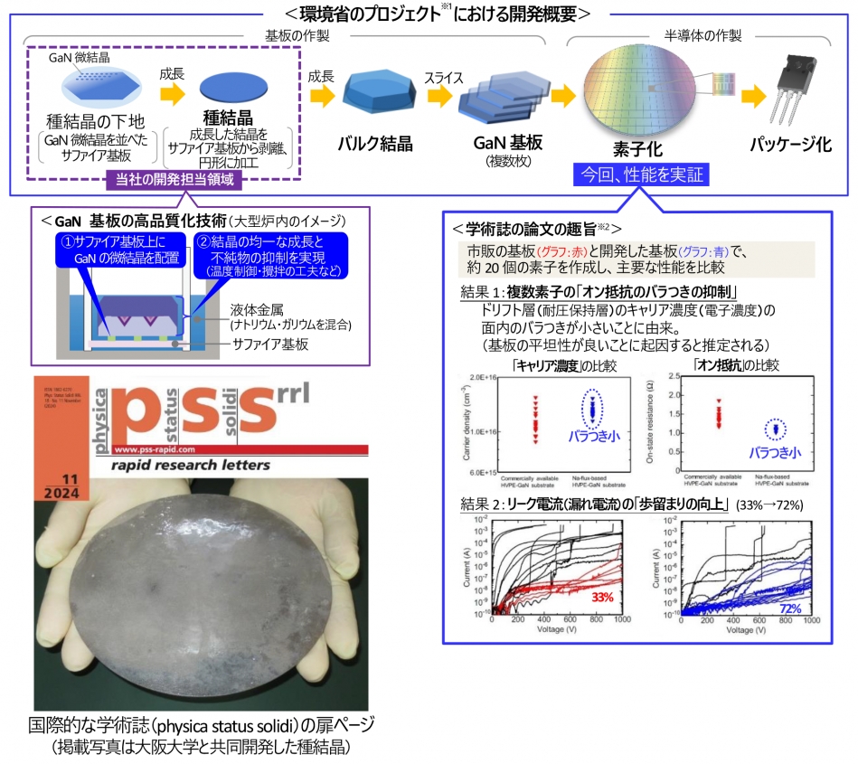 ※2 Yusuke Mori, et al. 2024. ‘Characteristics of Vertical Transistors on a GaN Substrate Fabricated via Na-Flux Method and Enlargement of the Substrate Surpassing 6 Inches’. physica status solidi (RRL) - Rapid Research Letters, Volume 18, Issue 11.