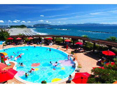 鳴門の海と大鳴門橋、淡路島を望む宿泊ゲスト専用プライベートビーチとプールが6月21日にオープン。縁日体験チケット500円分と小学生以下のお子さまには花火をプレゼント。