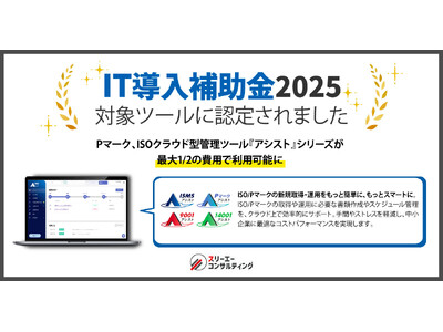 Pマーク、 ISOコンサルにおける支援実績 No.1(注1)のISO/Pマークの取得・運用支援サービス「認証パートナー」を提供する株式会社スリーエーコンサルティング(本社:大阪府大阪市、代表取締役社長:竹嶋 寛人)が、IT導入補助金2025の「IT導入支援事業者」に認定されました。