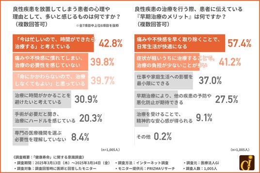 多くの患者は、時間がないことや、症状に対する慣れや命にかかわらないと考えてしまい、良性疾患を放置してしまう傾向にあることが示されました。