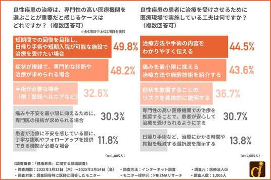 「良性疾患の治療は、専門性の高い医療機関を選ぶことが重要だと感じるケースはどれですか?(複数回答可)」と質問したところ、