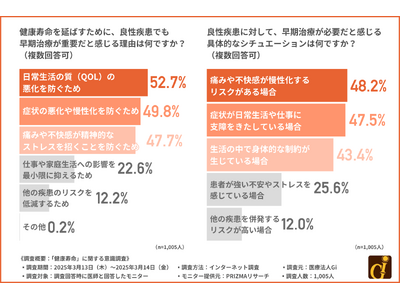 はじめに、「健康寿命を延ばすために、良性疾患でも早期治療が重要だと感じる理由は何ですか?(複数回答可)」と質問したところ、