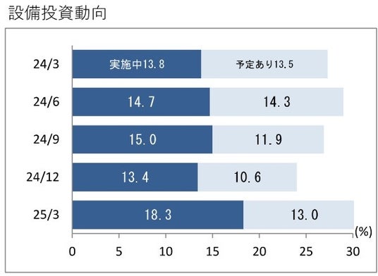 - 回復する設備投資:「予定あり」13.0%(前回比+2.4ポイント)