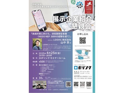 ロボット開発、部品製造、ソフトウェア開発、販売代理店、商社等、ロボット産業に携わる方や音声支援外出促進サービスの導入を検討している施設・個人の方に向けた講演会(LOOVIC株式会社による講演)・懇親会を開催いたします。