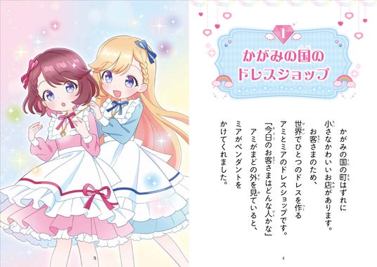かわいいドレスの絵を描くのが大好きなアミと、かがみの国のプリンセス、ミアが魔法の鏡の力で出会いました。二人は、自分にぴったりのキラキラのプリンセス・ドレスを作ることになったのですが――。