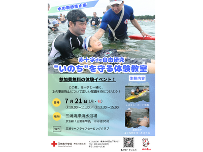 夏休みの自由研究にもぴったりな体験型イベント「赤十字de自由研究 ~いのちを守る体験教室~」を、7月21日(月・海の日)に三浦海岸海水浴場で開催します。