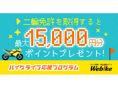 ウェビックでご利用いただけるウェビックポイントをプレゼントすることで、新たなバイクライフをサポートするプログラムです。