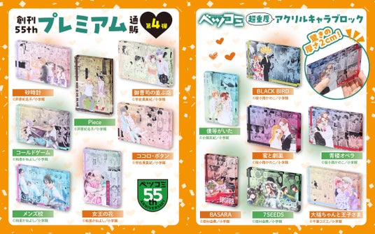 小学館少女まんが公式通販「ブルームアベニュー」にて、7月11日(金) より、ベツコミ創刊55周年記念「アクリルキャラブロック」第一弾を発売いたします。ベツコミ創刊55周年商品は2025年4月より5か月連続で新作発売中です。