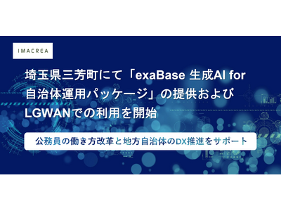 株式会社イマクリエ(本社:東京都港区、代表取締役:鈴木信吾、以下、当社)は、埼玉県三芳町に「exaBase 生成AI for 自治体運用パッケージ」の提供を開始したことをお知らせします。