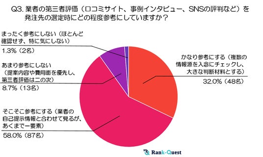 調査結果3.:業者の第三者評価(口コミサイト、事例インタビュー、SNSの評判など)を発注先の選定時にどの程度参考にしていますか?