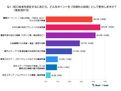 https://rank-quest.jp/column/column/how-to-seo/ )は、2025年3月11日にSEO業者への発注経験または検討経験がある150名を対象に「SEO業者の信頼性」に関する独自調査を実施しました。
