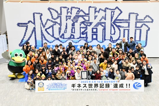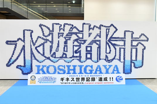 このたび、「折り紙で作った最大の文章」で、ブランドメッセ―ジ「水遊都市KOSHIGAYA」のロゴマークを表現し、下記のとおり、ギネス世界記録TMとして認定されました。