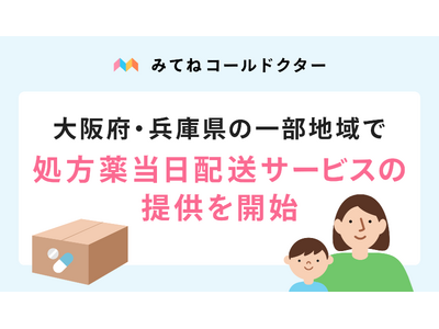 家族のためのオンライン診療アプリ「みてねコールドクター」を提供する株式会社コールドクター(東京都渋谷区、代表取締役社長:合田武広、以下コールドクター)は、2025年4月29日(火・祝)より、大阪府と兵庫県の一部地域にて、処方薬の当日配送サービスの提供を開始いたします。