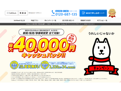 株式会社NEXT経由で「SoftBank 光」をお申し込みいただいたお客様全員に、40,000円のキャッシュバックを進呈します。(従来の37,000円から増額)