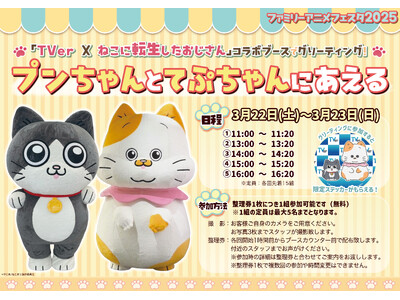 民放公式テレビ配信サービス「TVer(ティーバー)」は、2025年3月22日(土)と3月23日(日)に開催される、「ファミリーアニメフェスタ2025」にTVアニメ『ねこに転生したおじさん』(以下『ねこおじ』)とのコラボブースを出展します。