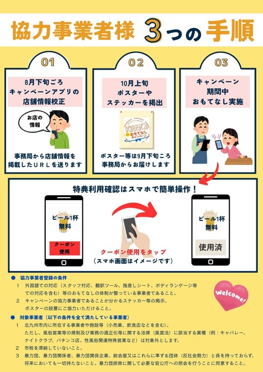 つきましては、本キャンペーンの趣旨にご賛同いただける協力事業者を下記の通り募集しますのでお知らせします。