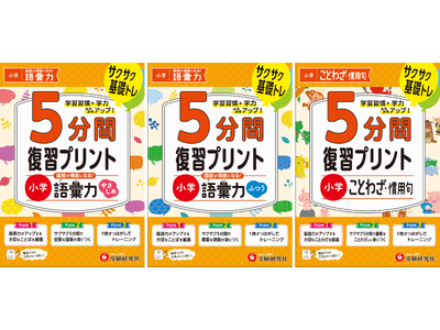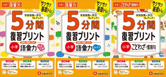 シリーズ総数40点を超える『小学 5分間復習プリント』に語彙力(やさしめ)、語彙力(ふつう)、ことわざ・慣用句が新登場!