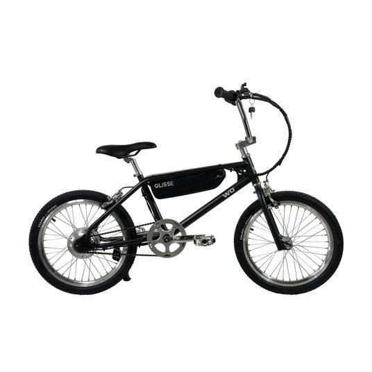 「GLISSE」(グリス)とは、フランス語で“滑る”を意味し、長くスムーズに波に乗るサーフボードのような感覚からインスピレーションを得ています。BMXの軽量すぎるギアや、トリックのために設計された故の乗りづらさを、電動アシストと融合することにより覆し、驚くほどスムーズな加速、車体との一体感、そして、坂道を登る時の浮遊感が生み出しました。速すぎず、急がず、疲れない、ただ自分のペースで、街の空気を感じるグライド感をお楽しみいただけます。