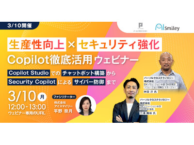 AIポータルメディア『AIsmiley』を運営する株式会社アイスマイリー(東京都渋谷区、代表取締役:板羽晃司)は、2025年3月10日(月)12時からCopilotを使った生成AI活用をテーマにウェビナーを開催します。