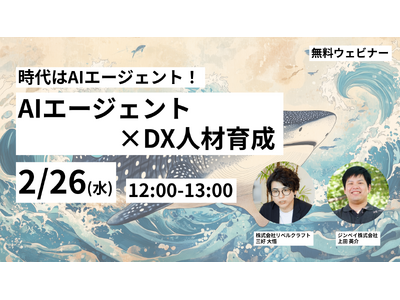 ジンベイ株式会社(本社:神奈川県横浜市、代表取締役:上田 英介、以下「ジンベイ」)は、株式会社リベルクラフト(本社:東京都中央区、代表取締役:三好 大悟、以下「リベルクラフト」)と、2025年2月26日(水)12時から、AIポータルメディアの株式会社アイスマイリー主催の「AIエージェント×DX人材育成」へ登壇することをお知らせいたします。