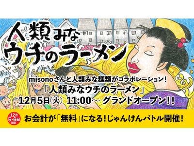 飲食店経営に初挑戦する「misono」さんの「ウチのシリーズ」第2弾として「人類みなウチのラーメン」を12月5日(火) 11時大阪・アメリカ村でグランドオープンしました。