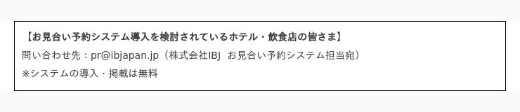 「婚活」と飲食店は親和性が高く、“初デート”や“二人だけの思い出”として心に残る場所になります。その場所でプロポーズや記念日の際に食事をするなど、お見合いやデート以外でも利用する可能性が期待されます。相互サービスのシナジー効果で新たな需要が生まれ、一度だけの利用に留まらず、生涯をかけて幸せの瞬間もサポートできると考えます。今後もIBJでは、企業との協業を通じて、より多くのご縁を育んでまいります。