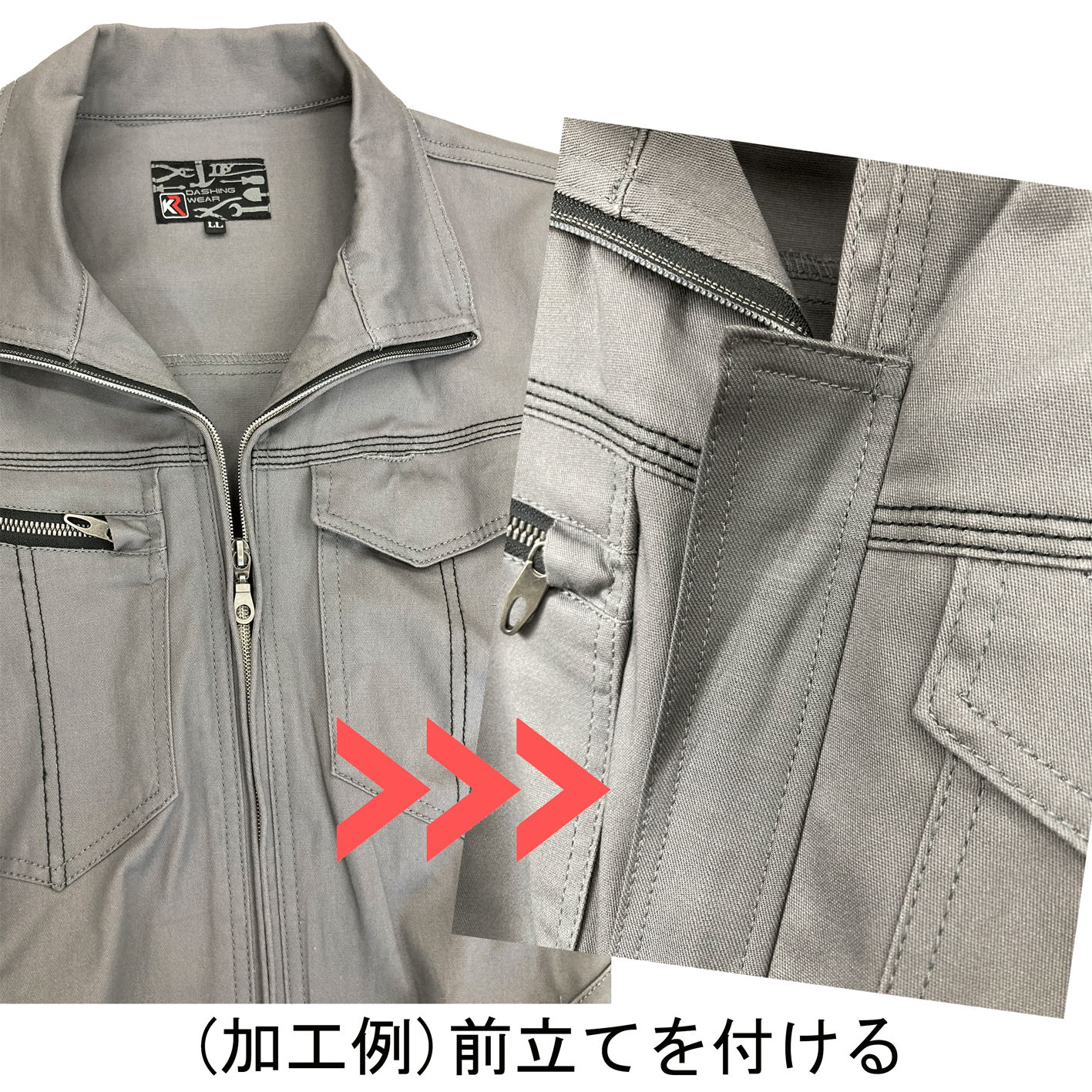 ユニフォームとしてのつなぎのイージーオーダーが可能なことは、まだまだ知られていません。補強布や反射材、カラーテープ、比翼を付け加えるだけの簡単な加工を施すだけでも、機能性や安全性、ファッション性がアップします。メーカーが直接お客さまのご要望を聞くことで、より多くのバリエーションでご提案が可能になり、これまで以上に手軽で早くプロ仕様のつなぎをお届けしていきます。