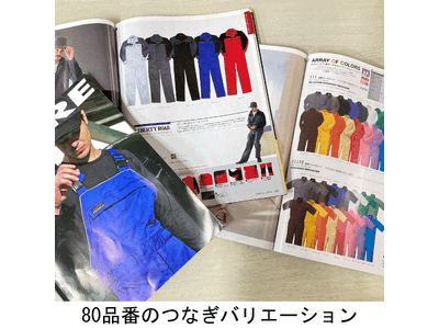 ファッション性・機能性を両立したプロ仕様つなぎを短納期・工場価格で提供。80型・最大10色から選定したつなぎをオーダー加工、最適なつなぎを実現