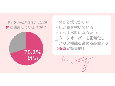 70.2%の女性が、ボディクリームや保湿ゲルなどで体を保湿