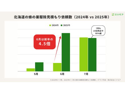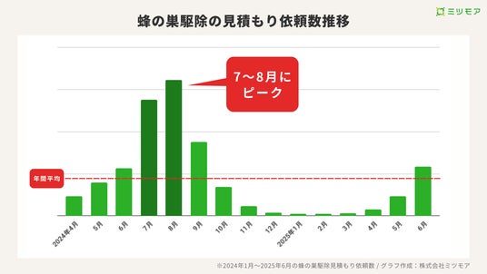 オンライン見積もり比較プラットフォーム「ミツモア」を運営する株式会社ミツモア(本社:東京都千代田区、代表取締役:石川彩子)は、2025年上半期の蜂の巣駆除の見積もり依頼データを分析しました。その結果、
