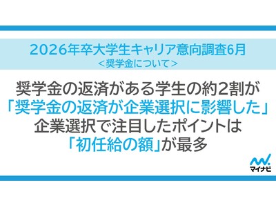 株式会社マイナビ(本社:東京都千代田区、代表取締役 社長執行役員:土屋芳明)は、2026年卒業予定の全国の大学生、大学院生を対象に実施した、「マイナビ 2026年卒 大学生キャリア意向調査 6月<奨学金について>」の結果を発表しました。