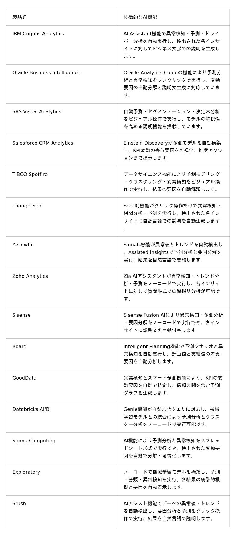 説明文の自動生成:検出されたポイントに対して「なぜ重要か」「何が起きているか」を自然言語で説明