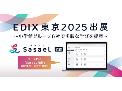 公立小・中学校向けのクラウド型校務支援システム「SasaeL 校務」を提供する株式会社SasaeL(ササエル、本社:東京都文京区、代表取締役:村中 順紀、以下 SasaeL)は、このたびこのたび、2025年4月23日(水)~25日(金)に東京ビッグサイトで開催される日本最大級の教育総合展「EDIX(教育総合展)東京2025」に小学館グループとして共同出展することをご報告いたします。