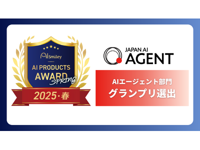 株式会社ジーニー(本社:東京都新宿区、代表取締役社長:工藤 智昭、以下ジーニー)のグループ会社である、AIを活用したプロダクト開発・販売を行うJAPAN AI株式会社(本社:東京都新宿区、代表取締役社長:工藤 智昭、以下JAPAN AI)は、提供・開発している自律型AIエージェント「JAPAN AI AGENT」が、株式会社アイスマイリーが運営するAIポータルメディア「AIsmiley」において、「AIsmiley AI PRODUCTS AWARD 2025 Spring」のAIエージェント部門でグランプリに選出されましたことをお知らせいたします。