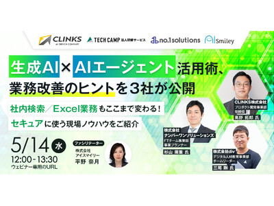 【5/14開催ウェビナー】生成AI×AIエージェント活用術、業務改善のヒントを3社が公開