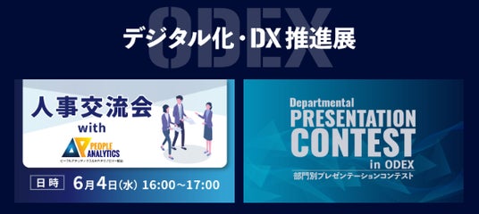 同時開催展の『第5回 デジタル化・DX推進展 (ODEX)』では人事業務の課題や成功事例を気軽に共有できる場として「人事交流会」効率的な情報収集、その場で質問・課題解決、懇親会で情報交換のできる「部門別プレゼンテーションコンテスト」を開催します。