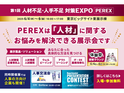 人材不足・人手不足対策EXPO 実行委員会(実行委員長堀正人、運営(株)イノベント)は、2025年6月4日(水)から6月6日(金)まで東京ビッグサイト 東1~3ホールにて「第1回 人材不足・人手不足対策EXPO」を開催いたします。会場には課題を解決するための「情報」「知識」「方法」が一堂に会し、「求める人材に出会えない」「社員に辞めて貰いたくない」「業務負担を減らしたい」そんなお悩みを持つ経営者・人事担当者向けの最新の製品・ソリューション、特別講演、体験型研修が会場でご覧いただけます。