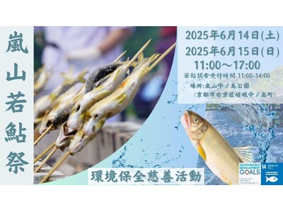 1日限定400匹の若鮎チャリティーイベントとして、1口1500円以上のご寄付をいただいた方に炭火で焼いた若鮎を試食していただきます。京都の観光スポット嵐山の渡月橋隣にある中之島公園にて2日間開催いたします。鮎の掴み取り体験や「SDGs啓発ブース」として水にまつわる実験ブース、「こども縁日」では射的やめだかすくいなど子供から大人まで家族みんなで楽しめます。