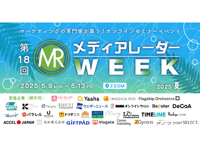 株式会社アイズ(所在地:東京都渋谷区、代表取締役社長:福島範幸、東証グロース:5242)が運営するNo.1*の広告業界のプラットフォーム「メディアレーダー」は、2025年6月9日(月)~13日(金)の5日間で、マーケティングセミナーイベント「第18回メディアレーダーWEEK 2025 夏」を開催します。