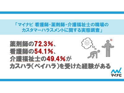 株式会社マイナビ(本社:東京都千代田区、代表取締役 社長執行役員:土屋芳明)は、看護師(准看護師を含む)・薬剤師・介護福祉士を対象に実施した、「マイナビ 看護師、薬剤師、介護福祉士の職場のカスタマーハラスメントに関する実態調査」の結果を発表しました。