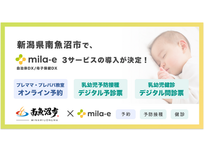 株式会社ミラボ(本社:東京都千代田区、代表取締役:谷川一也、以下「ミラボ」)は、オンライン予約サービス「mila-e 予約」、乳幼児予防接種デジタル予診票「mila-e 予防接種」、乳幼児健診デジタル問診票「mila-e 健診」が新潟県 南魚沼市に導入され、提供を開始しました。