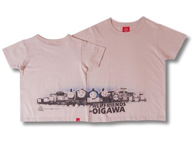 蒸気機関車「きかんしゃトーマス号」が走る大井川鐵道の公式イベント「DAY OUT WITH THOMAS(TM)2025」のテーマである「ALL FRIENDS IN OIGAWA」のキービジュアルをTシャツのフロントからバックにかけてプリントした限定デザイン。