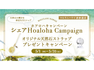ハワイ発祥の天然石アクセサリーブランド「マルラニハワイ表参道店」では、5月限定の特別イベントとして、商品購入とInstagramへの投稿を行ってくださった方限定で、マルラニハワイオリジナルの特別なストラップをプレゼントいたします。